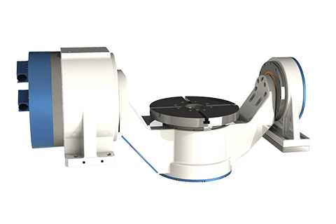 本产品为超级电机摇篮五轴转台,主要应用于数控机床上,作为机床第四轴,可分别以垂直或水平两种方式安装于机床工作台上。